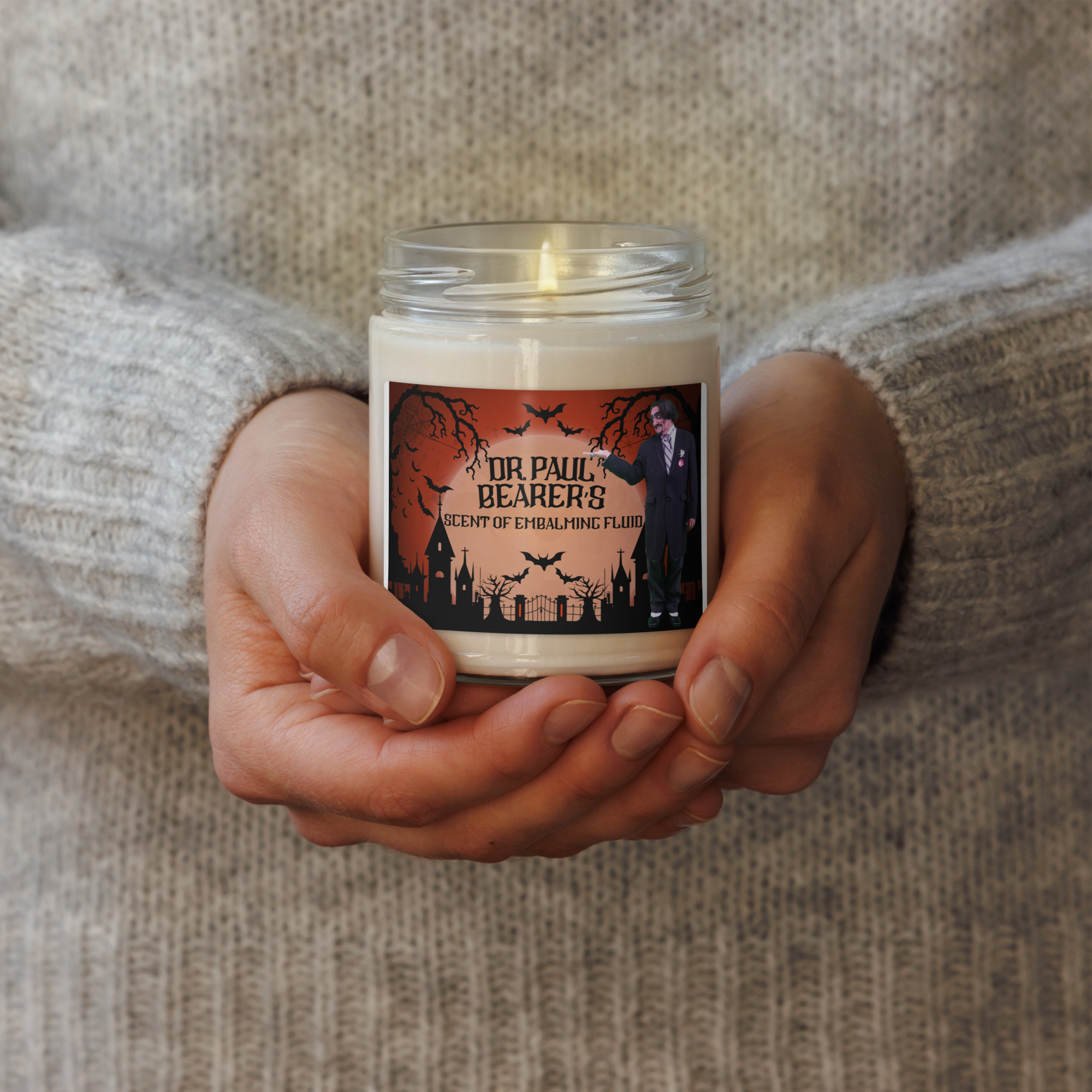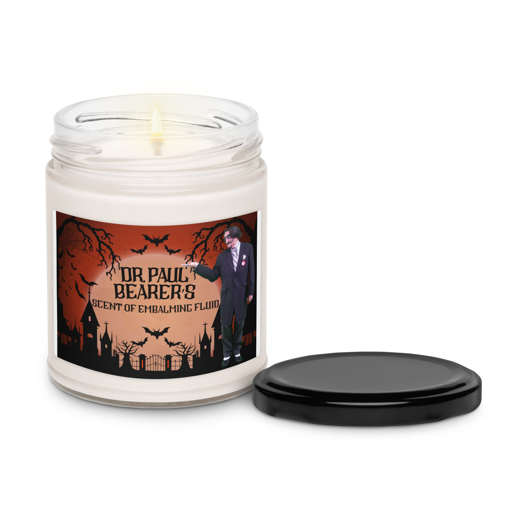 Ahhhh, the smell of embalming fluid. Can you dig it? Nah, just kidding. Dr. Paul’s candle scent is “Clean Cotton”.